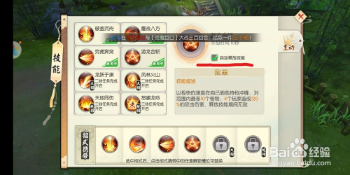 这个游戏中,玩家的技术不像其他游戏那样可以进级。这条目游戏中,脚色技术无法进行进级。可是脚色的技术都是会随玩家的战斗力以及品级来进行当作长的。在技术的设置中,玩家可以选择主动释放或者手动释放。