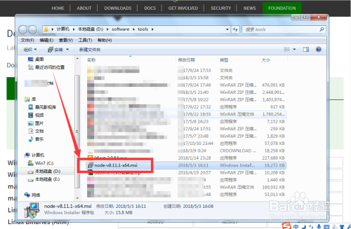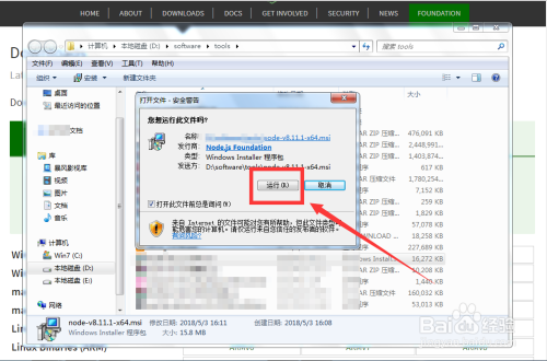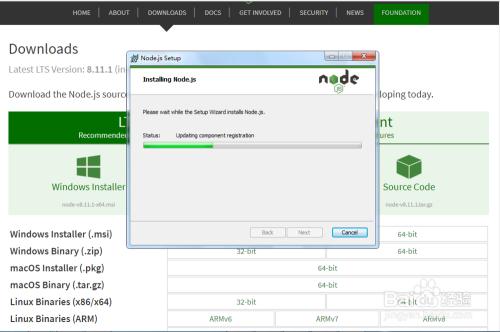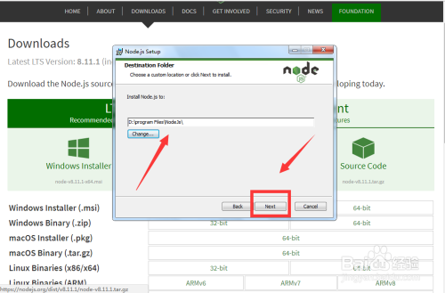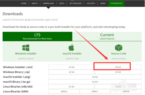 进入Node.js的下载页面,然后找到对该当前电脑系统的Node.js版本,点击下载Node.js软件,如图: