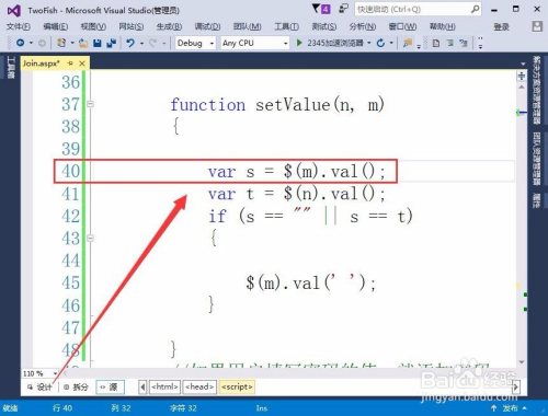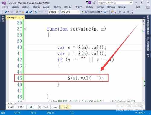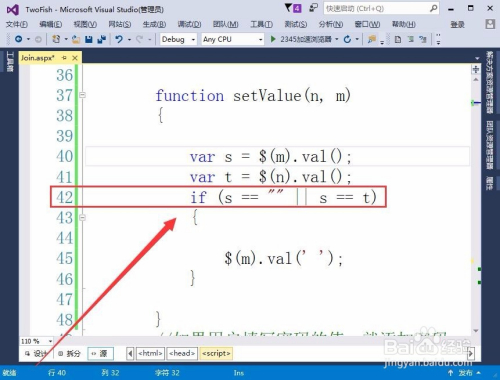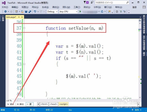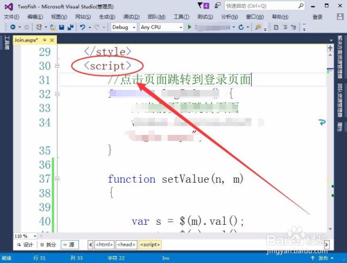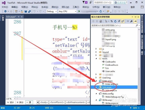打开Visual Studio软件,选择一个已有的网页文件,本例为Join.aspx。