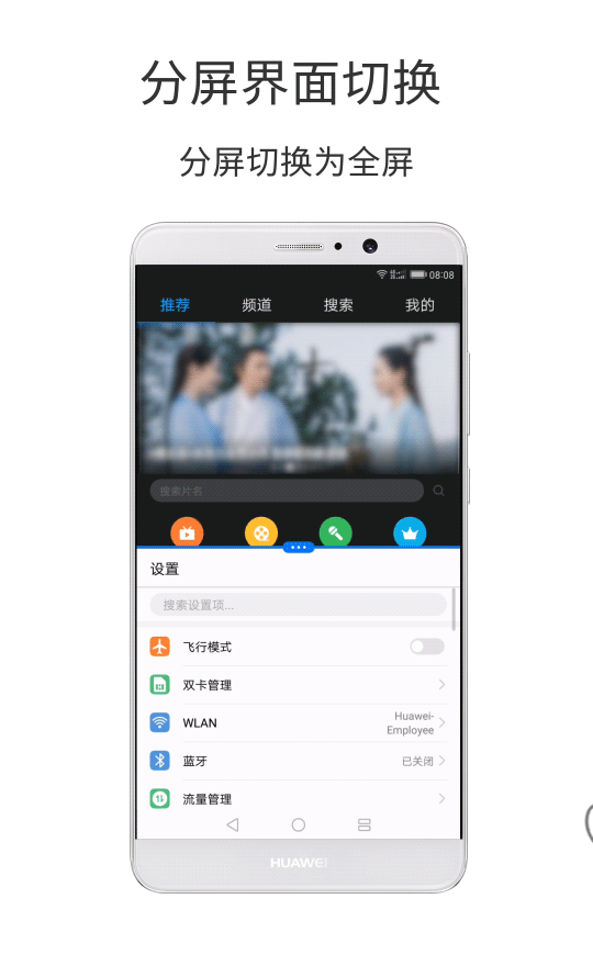 分屏可以让你在屏幕上同时开启两个窗口,让两个应用同时运行,互不影响。无论是一边看看美图一边聊天,仍是一边网购一边刷微博,都可以经由过程一屏两用完美实现。