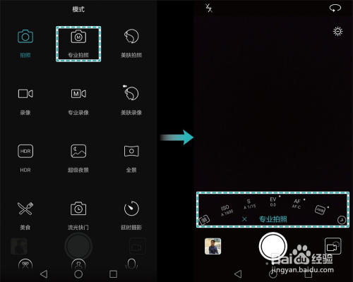 进入相机,手指在屏幕上标的目的右滑动,即可选择模式。点击专业摄影,可按照场景选择ISO,快门速度,对焦体例等。本身的年夜片本身做本家儿哦!