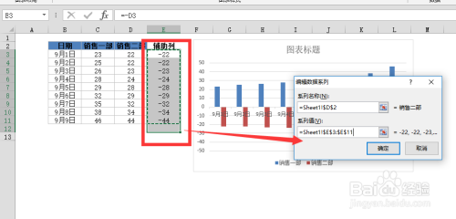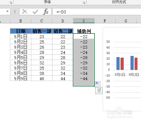 如图所示,我们日常平凡常会把选择数据,插入柱状图,如图所示。那么,我们该怎么绘制上下对比的柱状图?