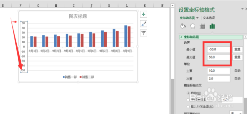 单击纵坐标值,右键鼠标,在弹出的列表选择设置坐标轴格局。