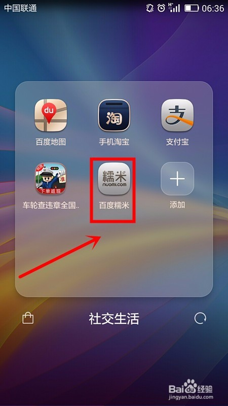 从手机中找到安装在手机中的糯米平台应用;