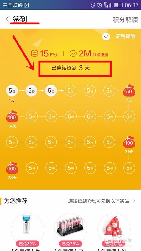 手机页面此时立马跳转至签到页面,我们可以看到本身已经持续签到的环境;