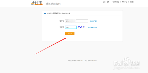 我们继续输入本身账号,输入页面上的验证码,然后点击下一步,如图所示~