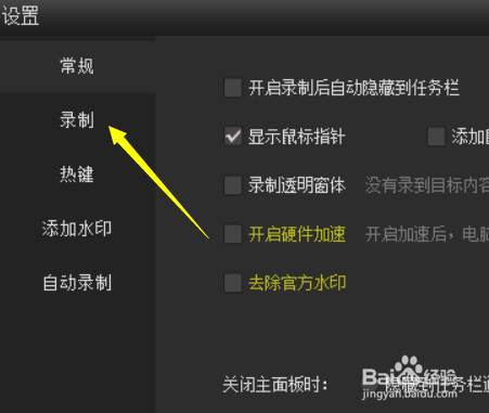 点击设置进入到设置页面,这里我们选择常规下的录制按钮。