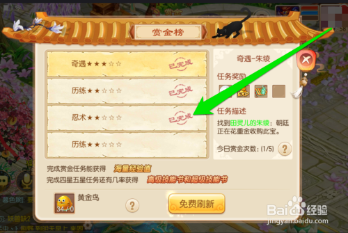 完当作赏金使命后,领取赏金奖励。再返回赏金使命列表,查看完当作状况。