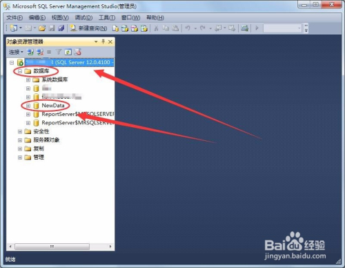 在左侧对象资本办理器中,睁开数据库选项,找到NewData数据库。