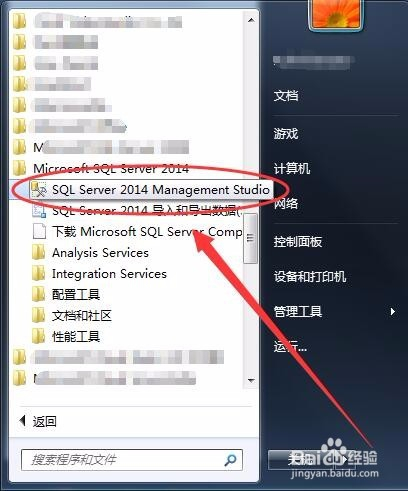 单击起头---->所有法式---->Microsoft SQL Server 2014,选择SQL Server 2014 Management Studio选项,打开软件。