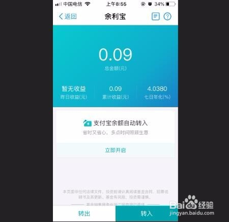 然后在余利宝页面点击当即开启余利宝功能,然后进行授权确定,如许我们的余利宝就开通了。