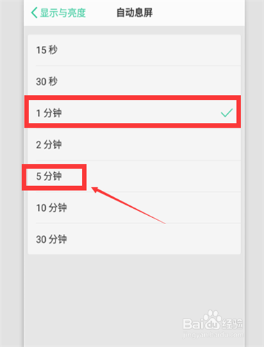 此刻就可以在打开的页面中自由选择你需要的时候点了。这里以设置5分钟为例‘选中。
