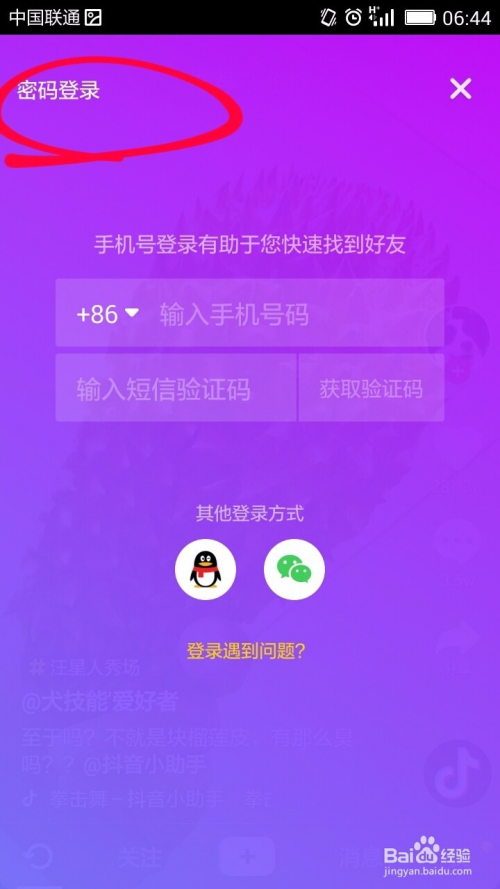 此时,我们已经退出账号登录,当我们再次选择我这一模块时,我们可以看到密码登录页面,这时,我们得从头登录账号。
