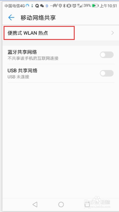第四,进入移动收集共享页面后,我们可以看到有一个--便携式WLAN热点,这里,点击它进入。如图所示。