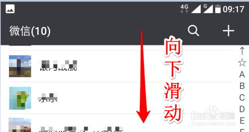 点击联系人图标后,进入微信老友的界面。用手指标的目的下滑动屏幕,一向拉到老友的最底端。
