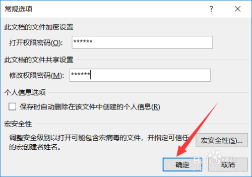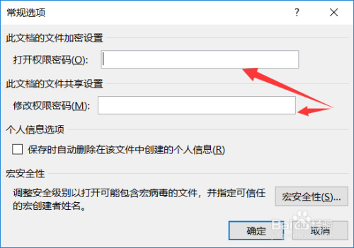 在弹出常规选项的窗口中我们可以看到可以设置两个密码即【打开权限密码】和【点窜权限密码】。