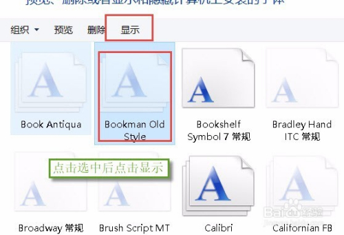操作五:我们可以看到字体颜色是浅的字体是埋没字体,,我们可以点击上方菜单栏的显示选项,操作图片步调如下