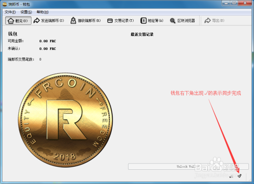 期待所有区块同步完,钱包右下角呈现√的暗示同步完当作。