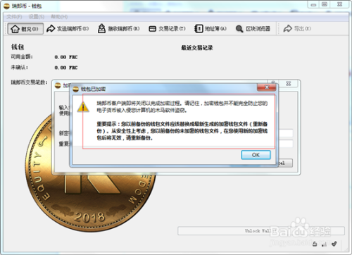 钱包左上角,点击【设置】->【钱包加密】->【ok】。然后会提醒需要从头打开钱包。等钱包封闭后,等1~2分钟后,在从头打开钱包。