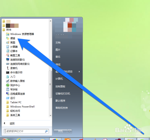 进入电脑的桌面后,在电脑的桌面的使命栏点击起头按钮。弹出开始菜单后,在在起头的菜单点击附件里的便签法式。
