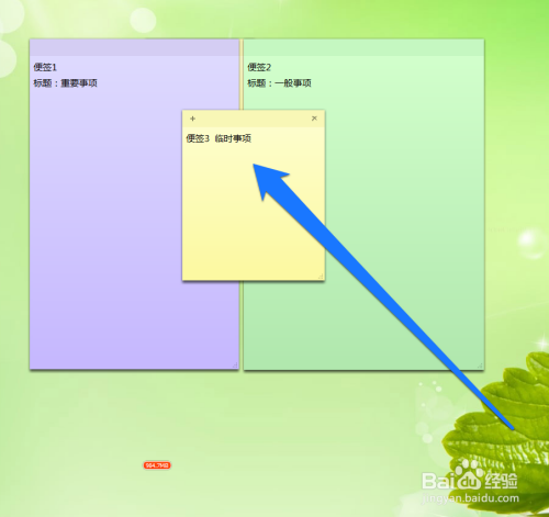 - 便签的在桌面的位置,可以利用鼠标进行拖动摆放。