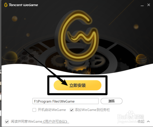 点击下载好的WeGame,设置存储位置、开机自启等,点击【当即安装】就完当作了
