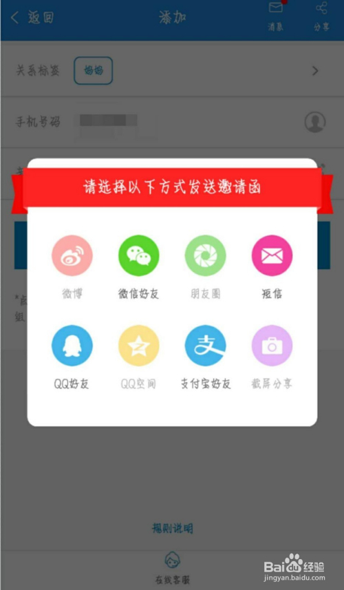 邀请家人、情侣插手移脱手机号亲密圈的方式