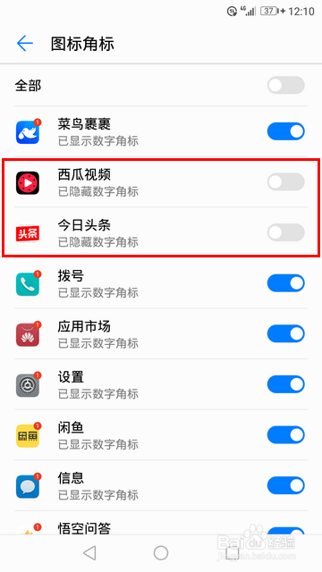 若是我们不想某些应用显示角标,则可以将响应的开关封闭。