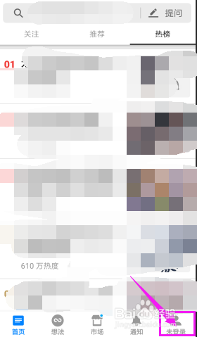 点击底部tab【未登录】。