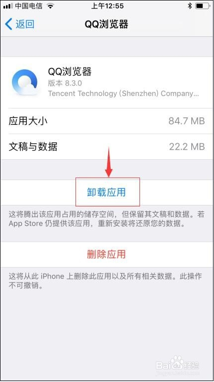 选择一个应用法式,譬如QQ浏览器,鄙人面就呈现卸载应用和删除应用两个选项,卸载应用后将腾出该应用所占的空间,但仍保留其文稿和数据,可是若是选删除应用,该应用及其所稀有据城市被删除,所以大师要按照本身的需要稳重选择;