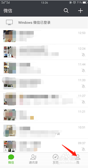 首先打开微信的本家儿界面,然后点击下方的“我”。
