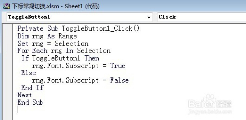 基于VBA技巧一键节制选区内容鄙人标形态和常规形态之间切换。