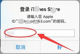 接着,会呈现密码提醒窗口,输入iPad的注册帐号密码即可。