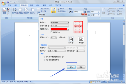 在弹出的对话框中我们可以选择稿纸的格局,有“方格局”“横线式”“外框式”,这个按照我们小我的需要选择就好,然后再设置网格数目和网格颜色等,都设置好了就可以点击“确认”了