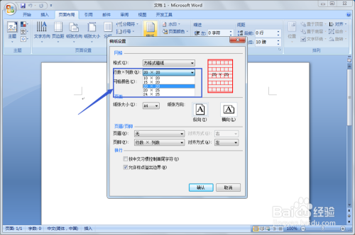 点击打开Word软件,选择菜单面板上的“页面结构”选择下拉菜单中的“稿纸设置”