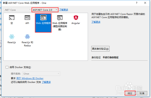 选择框架:ASP.NET Core 2.0 ,Web 应用法式,如下图所示: