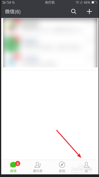 如图在手机登录我们的微信账号。在微信本家儿页面,点击右下角的“我”。