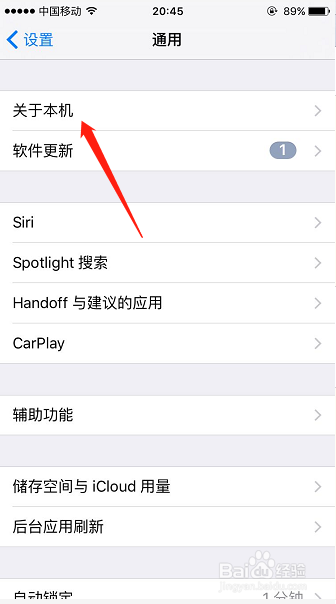 然后在通用页面,第一行,可以看到关于本机