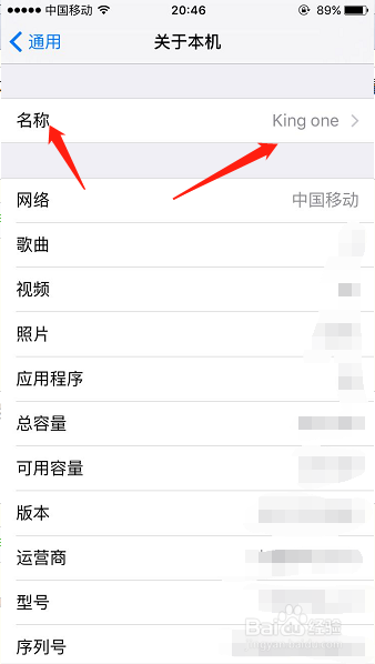 这个时辰再从头看关于本机页面,在名称那边,已经改当作你方才编纂的名称了,所以,你这部手机今后显示的名称就是King one