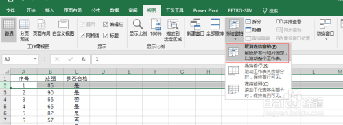若是要解除冻结,在冻结窗口的下拉菜单中选择打消冻结窗格即可