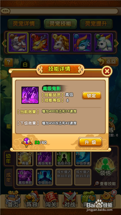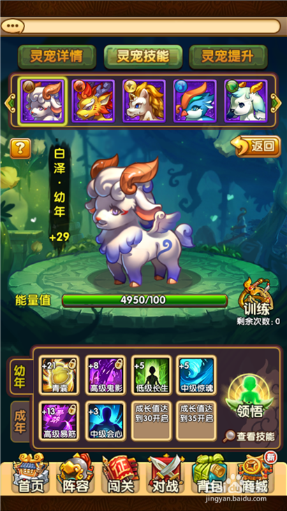 进入之后,我们会看到下方有良多宠物技术,这个跟着宠物品级的增添,技术总量也会增添,而我们刷新出来好技术之后想要留着它。