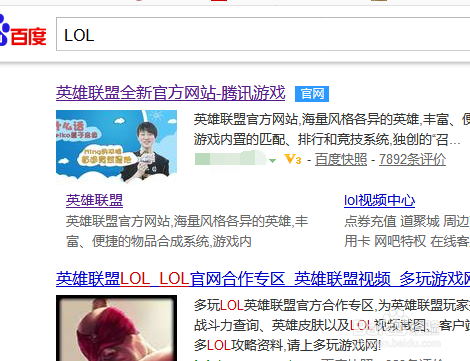 然后在搜刮到的成果列表中我们来选择LOL的官网点击进入。
