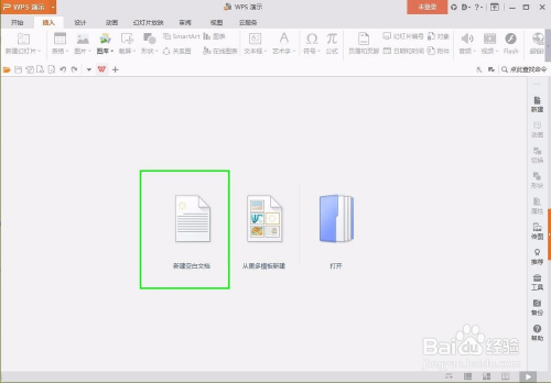 首先打开ppt软件,这里是wps的版本,然后点击新建空白文档,如图所示: