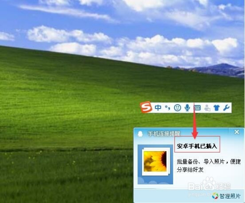 将手机与电脑用数据线相毗连,毗连当作功后呈现提醒;