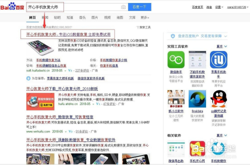 若是你没有这个软件,可以先在百度里输入手机恢复巨匠,按百度提醒框里的关头字搜刮,因为高兴是雷区词,加上后不克不及发布,我就省略了。鄙人面呈现的网页链接中点第一个,安装好该软件;