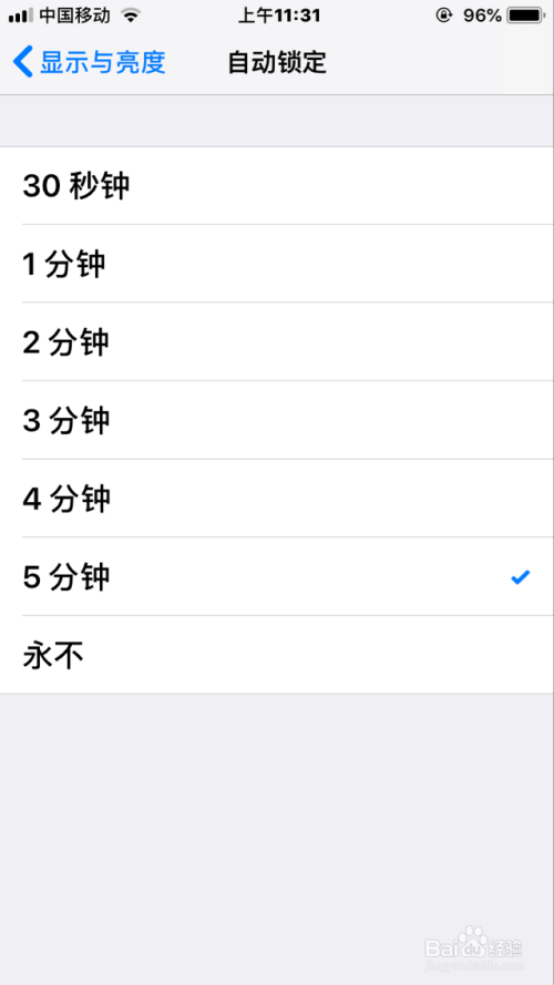 在主动锁定的待机时候选项——选择你需要的待机时候——点击就完当作了调整待机时候,说是不是很简单呢?若是有效记得点赞哦。
