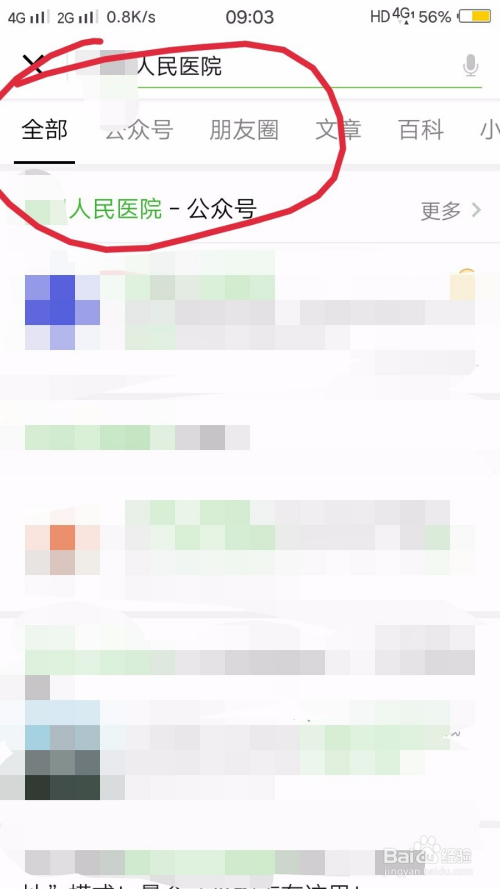 首先我们找到微信app,然后进入微信后在顶部的搜刮项里面搜刮本地病院的微信公家号。