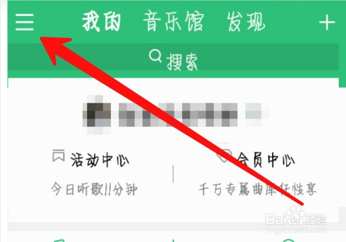 悬浮窗权限打开了之后,进入QQ音乐的首页,点击一下左上角箭头所指的菜单小图标。