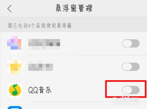进入到悬浮窗办理界面,我们下拉页面找到【QQ音乐】并打开。