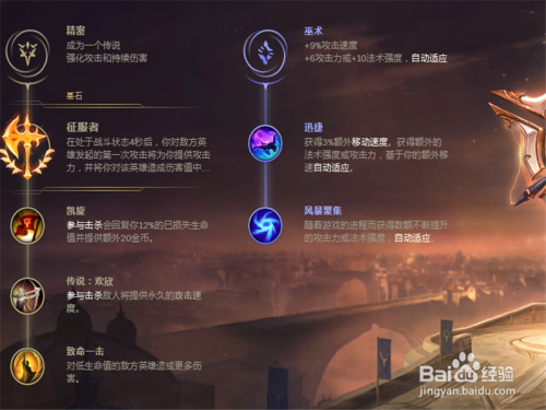 副符文选择巫术,然后选择迅捷和风暴,移动加当作对于剑圣仍是不错的,尔后期会加倍凶猛。